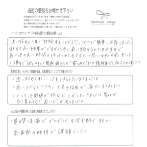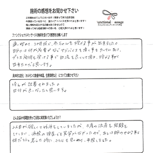 でもファンクショナルマッサージの施術の力はとても大きかったです!