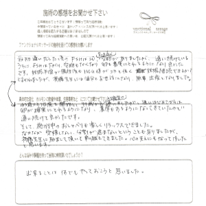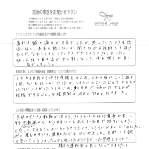 ここまでくるのに苦労していましたが、施術を受けてから順調に進められたため、もっと早くやってみれば良かったと思いました。